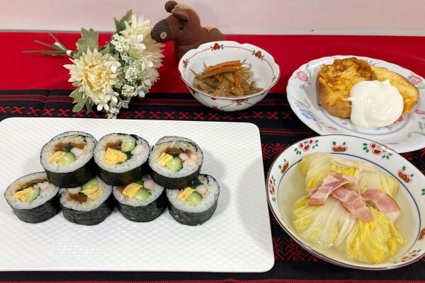 ‣ ‣ ‣ ‣ ‣ ‣ ‣ ‣ ‣ ‣ ‣ ‣ *卵焼き *巻き寿司 *ロール白菜 *根菜きんぴら *フレンチトースト ‣ ‣ ‣ ‣ ‣ ‣ ‣ ‣ ‣ ‣ ‣ ‣ |