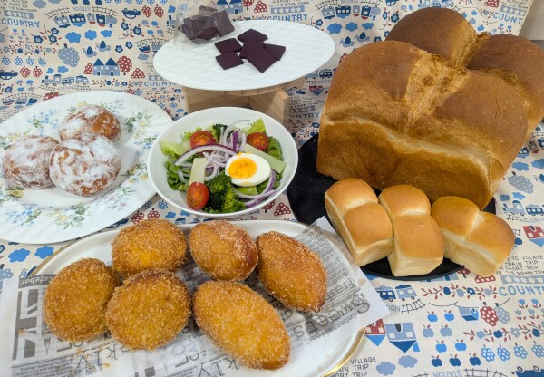 ・*・.・*・.・*・.・*・.・*・. ☁山型食パン ☁カレーパン・あんドーナツ ☁むらさき芋クッキー ☁サラダ ・*・.・*・.・*・.・*・.・*・. |