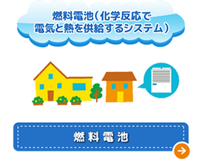 燃料電池は、従来の発電方式のように燃料(天然ガス、石油)を燃焼させるのではなく、化学反応で電気と熱を供給するシステムで、小規模でも発電効率が高く、家庭用規模から数百kW級コージェネレーション等の実用化への研究開発が進められております。