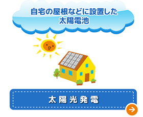 太陽光発電とは、太陽の光エネルギーを太陽電池を用いて電気エネルギーに変換するしくみです。