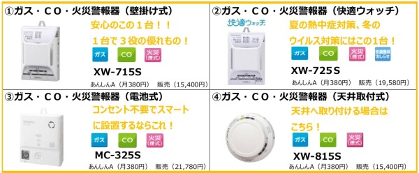 ・ガス漏れ・CO・火災 (1台で3役)